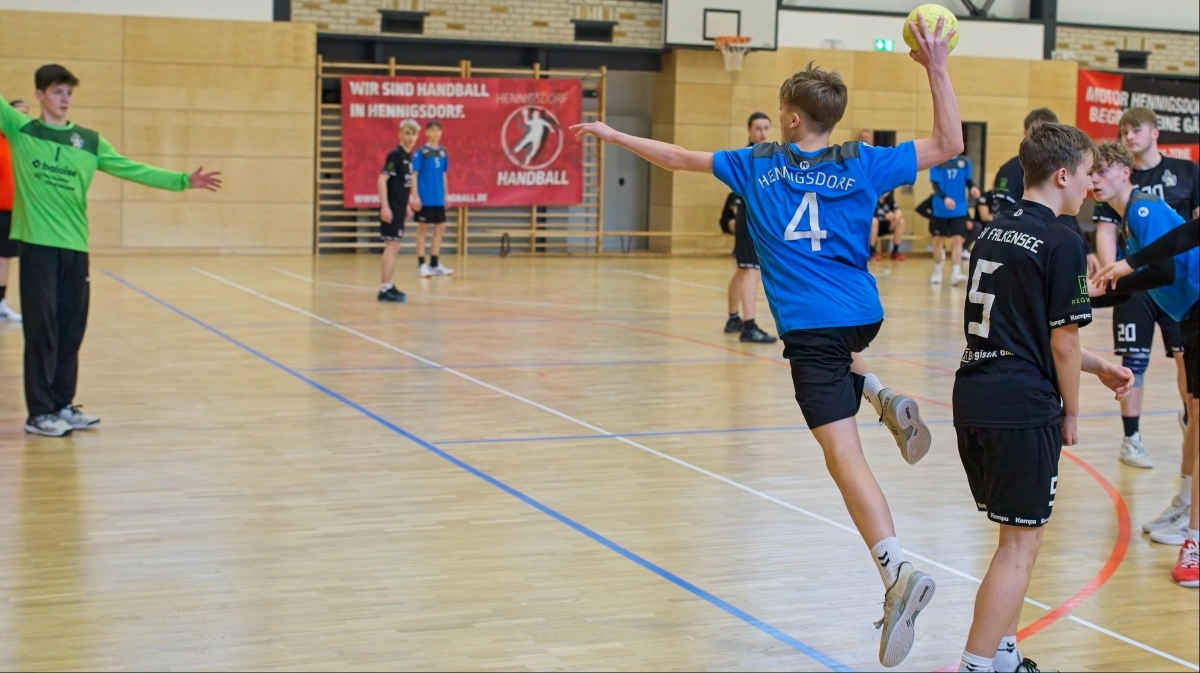 Zu Beginn stand schon fest, dass es ein enges Lokalderby werden sollte: schließlich spielte der Tabellenletzte gegen den Tabellenvorletzten. Und genauso kam es dann auch. Die Zuschauer sahen einen offenen Schlagabtausch - keiner der Mannschaften konnte sich entscheidend absetzen. Auf Hennigsdorfer Seite ist Jakob herauszuheben - der ein richtig gutes Spiel machte und ein hohe Trefferquote hatte. In der Mitte der 2. Halbzeit verletzte sich Niklas schwer an der Schulter - die Hennigsdorfer knickte daher einige Zeit ein. Die Gäste nutzten die Gelegenheit und zogen minimal davon. Hennigsdorf konnte nochmals verkürzen - am Ende fehlte ein Tor zum ersehnten Punkt. Gute Besserung an Niklas.